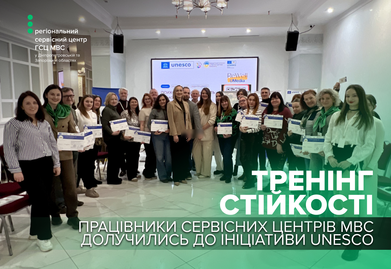 Представники регіонального сервісного центру МВС у Дніпропетровській та Запорізькій областях долучились до спеціалізованого тренінгу в межах проєкту «Стійкість і добробут українських медійних фахівців у воєнний час» (ReWell-UMedia). Участь у заході також взяли колеги з Вінницької, Черкаської та Кіровоградської областей.