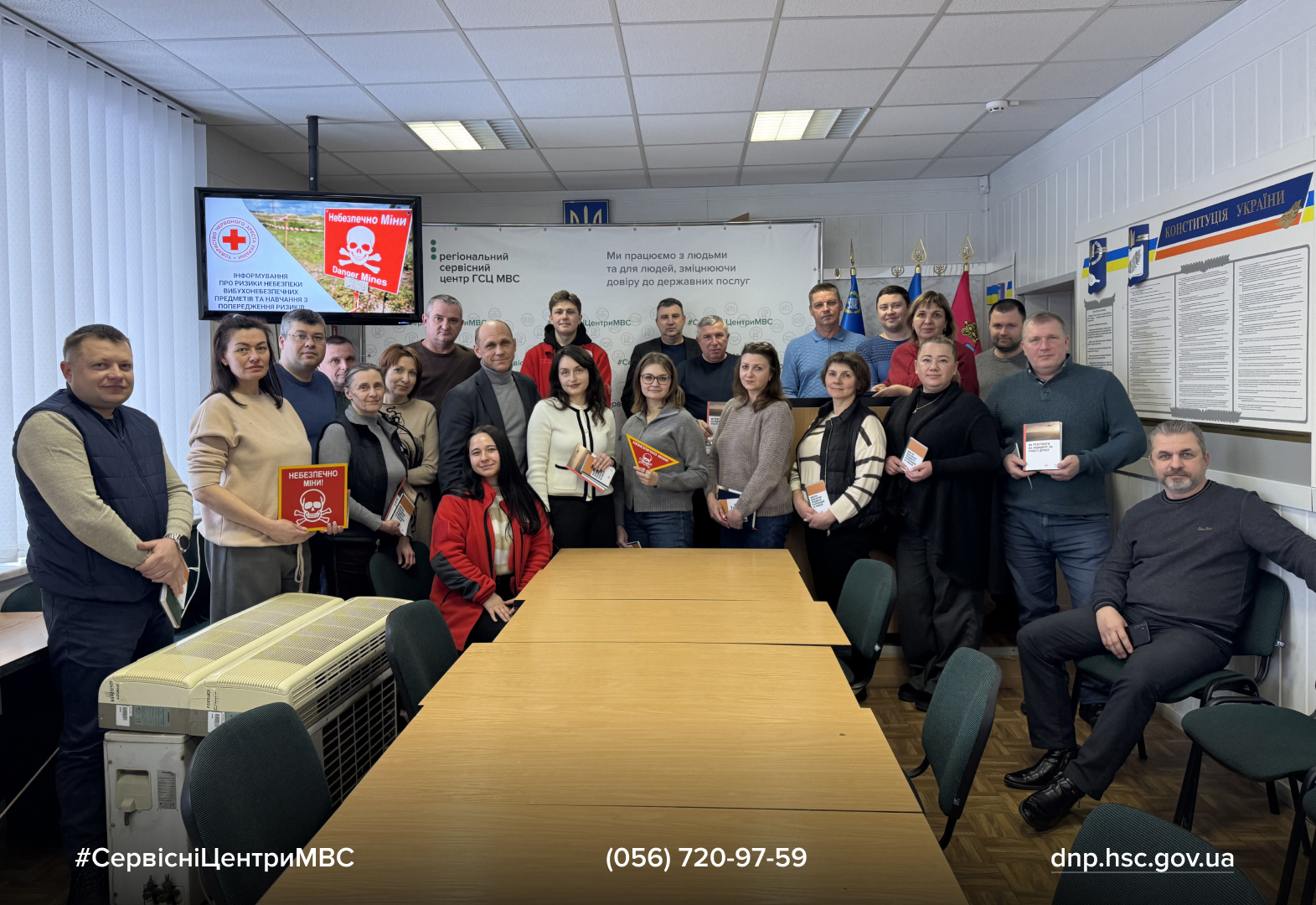 Напередодні Міжнародного дня освіти до адміністративної будівлі регіонального сервісного центру МВС у Дніпропетровській та Запорізькій областях завітали представники Товариства Червоного Хреста України, щоб провести навчання з мінної безпеки. Під час заходу учасники дізналися про: