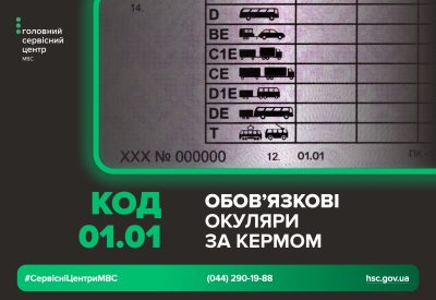 Якщо в медичному висновку зазначено, що особа має користуватися засобами корекції зору (окуляри чи контактні лінзи), у посвідчення водія вноситься відповідний код із групи «01» — наприклад, 01.01 (окуляри) або 01.02 (контактні лінзи).